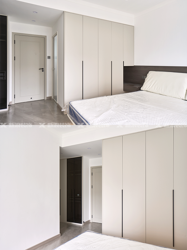 門墻柜一體,臥室根據喜好和需求用煙熏尤加利+象牙灰和墨綠色搭配,獨特又有個性;三個臥室都做了充足的衣柜收納,?掛衣區、疊衣區、被褥區、小件區……整潔有條理!