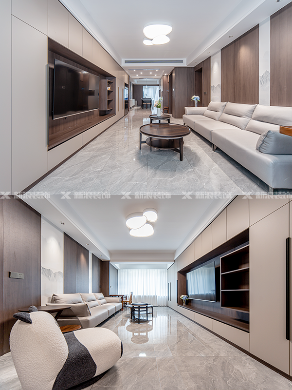 #新浪裝飾#全屋定制工廠#麗爾曼頓#裝修公司#新中式#現代風格#裝修設計#地磚通鋪#客餐廳裝修
