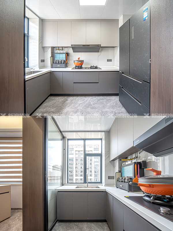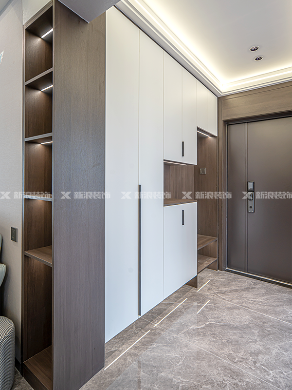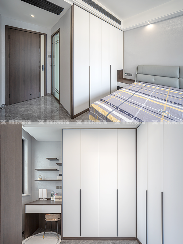 全屋定制:柜體板材是十環(huán)認證萬象天冠18厚杉木實芯板,柜門做的是歐松板模壓門;五金是奧地利進口百隆五金,自有全屋定制工廠實現(xiàn)門、墻、柜一體化;