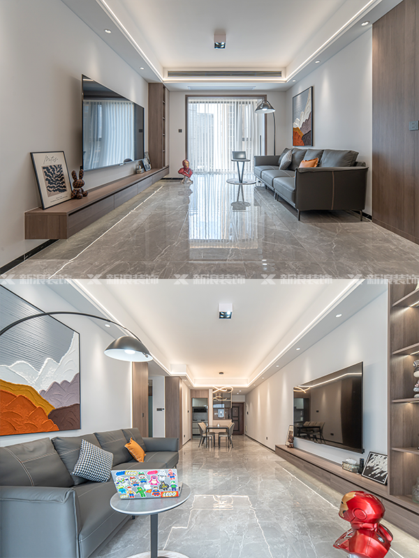 全屋通鋪大板磚,沒有門檻石,整體更流暢。