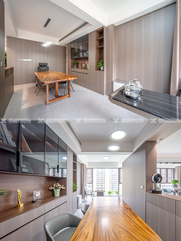 客廳后方設(shè)計(jì)開(kāi)放式書(shū)房,將藝術(shù)與實(shí)用性相結(jié)合