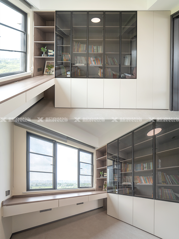 書房超長沿窗書桌+滿墻書柜,打造多功能房,實用滿分