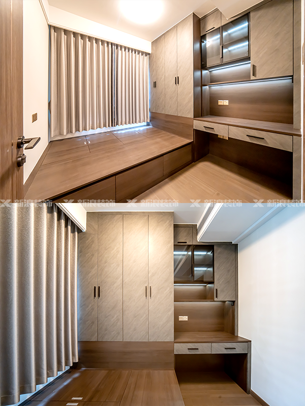 臥室衣柜、書桌和榻榻米一體化設(shè)計,最大化利用空間