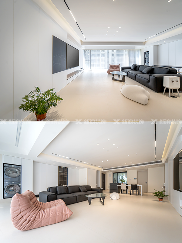 極簡電視背景墻、一門到頂高端定制柜營造整屋高級感