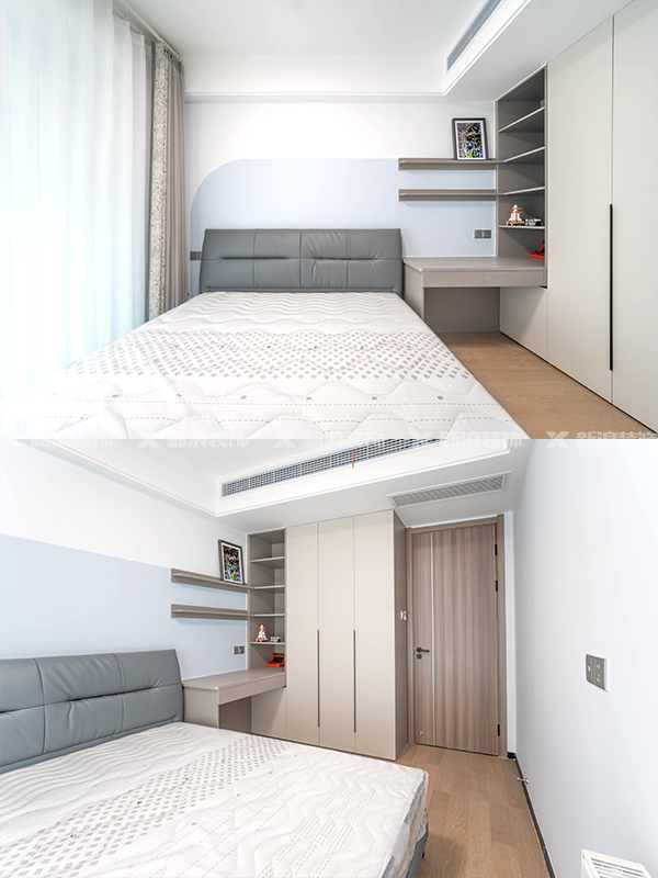 一門到頂?shù)脑O(shè)計(jì),臥室柜做書桌衣柜一體化,簡(jiǎn)單又實(shí)用