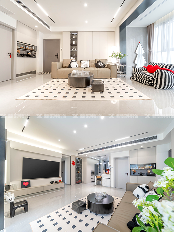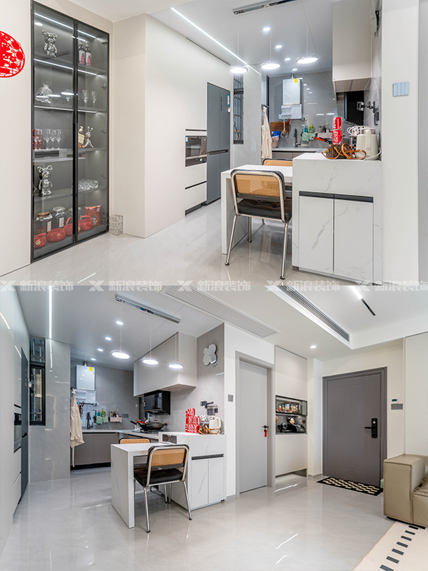 全屋現代極簡風格,一門到頂,搭配一些玻璃柜門和鏤空展示,真的像是把小紅書上優質案例直接搬到了家里!