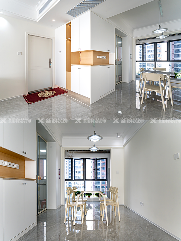 入戶柜與餐邊柜形成L型設計,更大限度的利用空間
