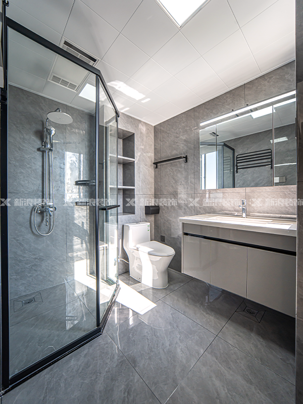 整體色調(diào)偏灰色系,采用深色原木色進行點綴,凸顯整體的質(zhì)感。