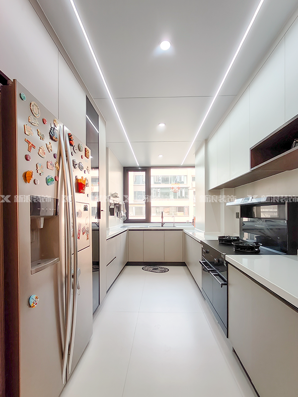 廚房做小U字布局,洗切炒動線合理,高低臺設計不累腰
