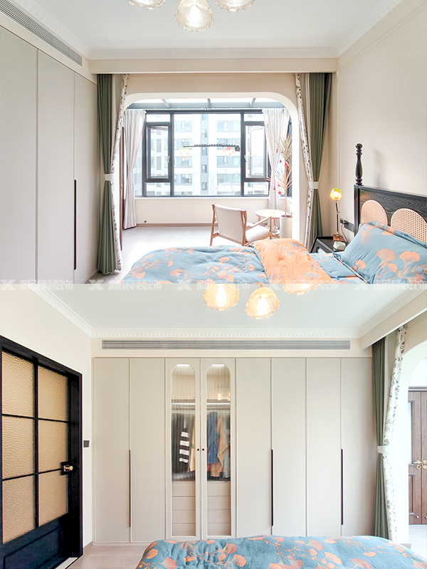 主臥不做隱形門,雙開復古門移到陽臺位置,原先的進門位置做梳妝臺,空間利用up!