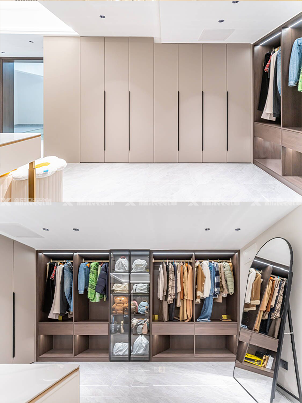 全屋定制:柜體18厚杉木芯板、柜門歐松板、五金進口百隆