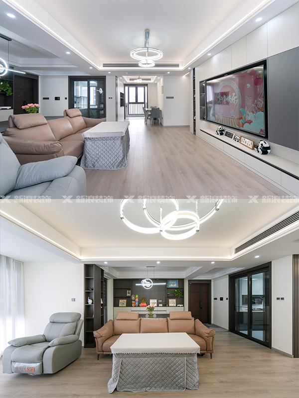 簡約邊吊和燈帶、明裝筒燈結合,氛圍拉滿且不壓層高