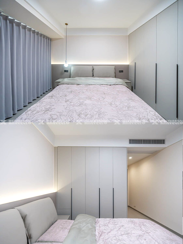 建議預算夠的話一定要做全屋定制,真的比木工現打要有質感得多!本案選擇胡椒灰+象牙灰配色,收納+顏值達到統一!