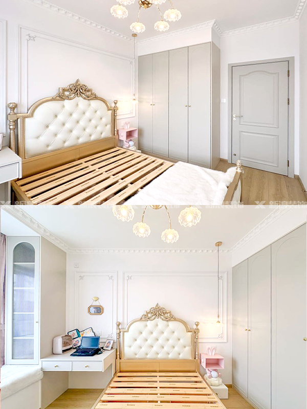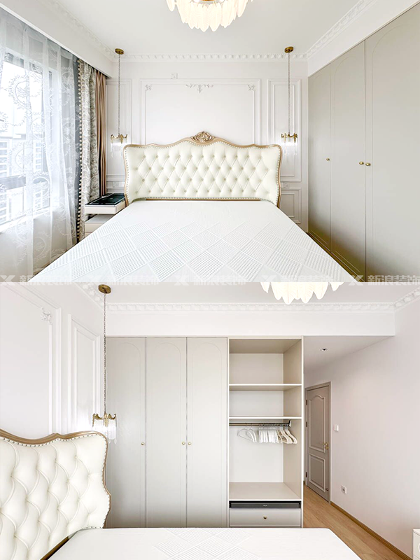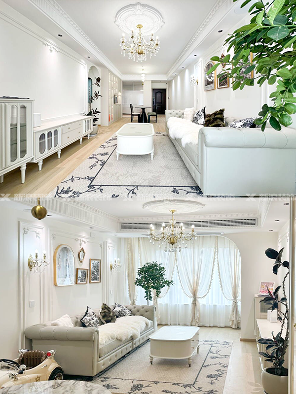 墻上頂上的PU線條、精致的吊燈、柔軟的窗簾以及各種浪漫的裝飾品,讓空間更具法式韻味