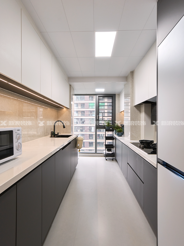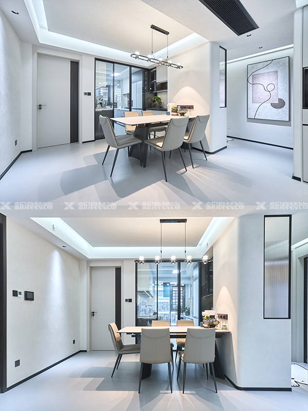 墻體轉角做弧形設計,搭配極窄黑色金屬踢腳線,好打理衛生,和白色墻體絕配!