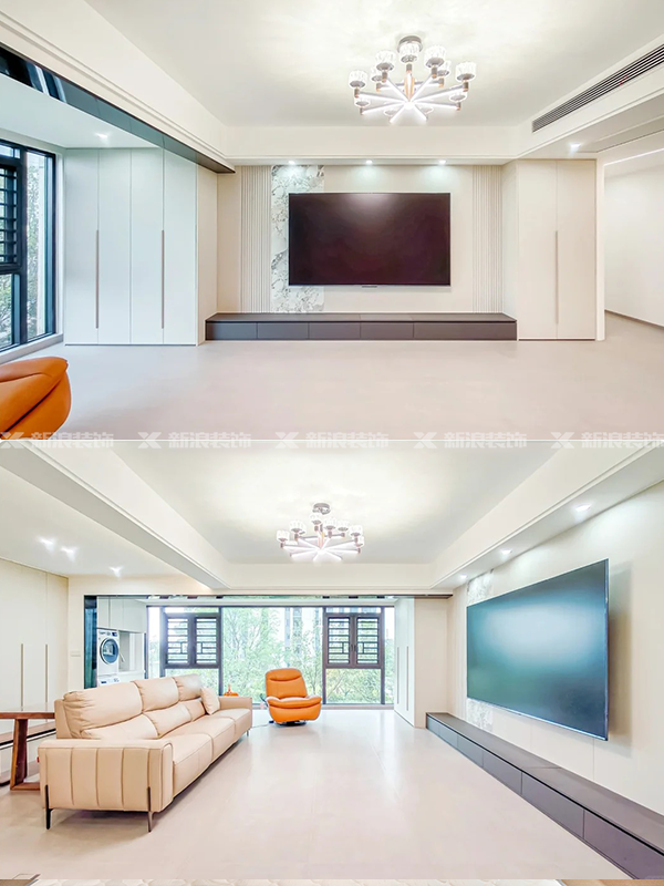 客餐廳做吊燈+筒燈搭配,寬闊又不影響層高,光線超好的。