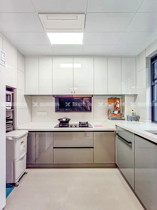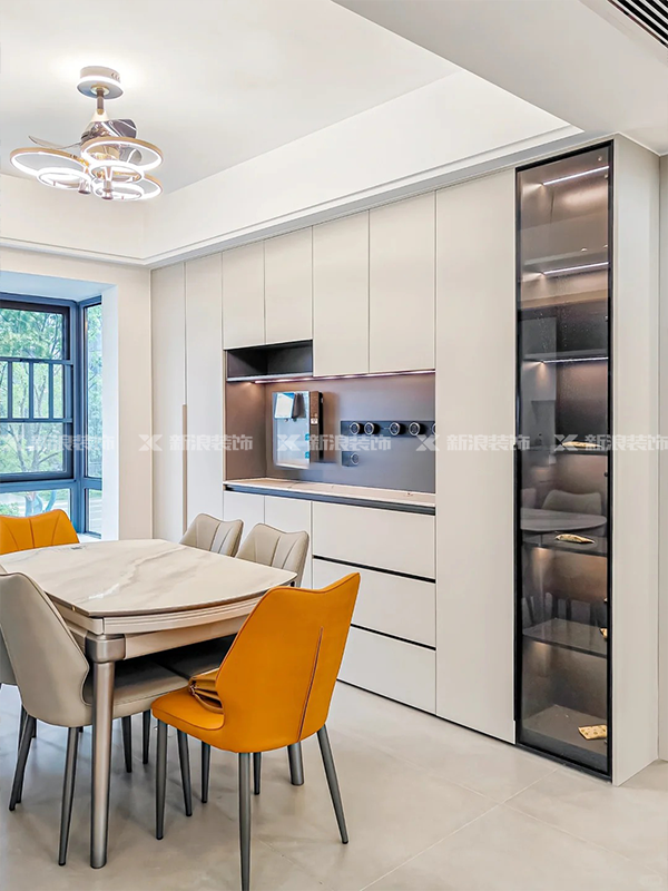 整體色調以現代黑白灰為主,設計簡潔利落,搭配巖板點綴,低調奢華。