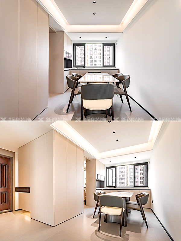 大橫廳做懸浮無主燈吊頂,客餐廳一體視線超寬闊。