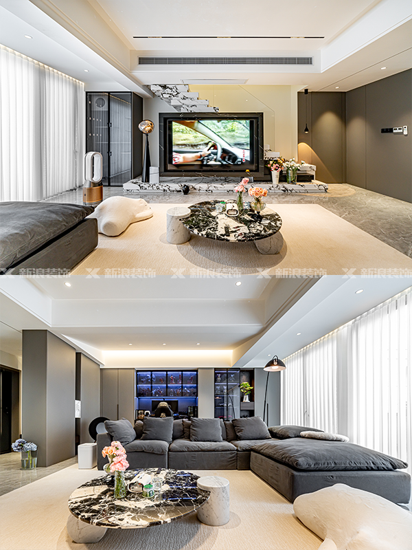 一樓客房取消,直接并到客廳,增加了客廳的寬廣度和互動性。