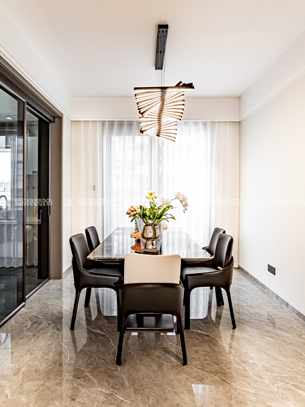 客廳、餐廳、生活陽臺聯(lián)通,全開放的公共區(qū)域在視覺更寬闊,動線上也非常便利。