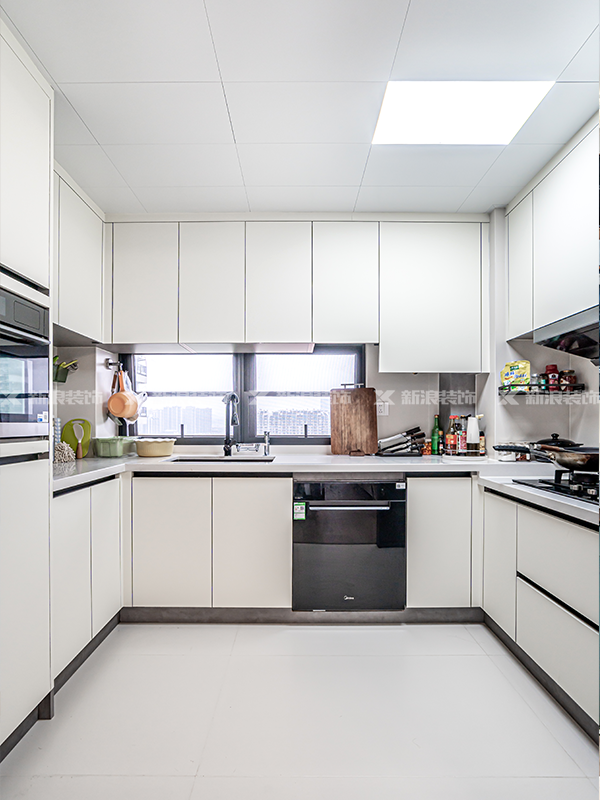 圓弧角定制、通體型材拉手一門到頂,使得空間柔和、不怕磕碰。