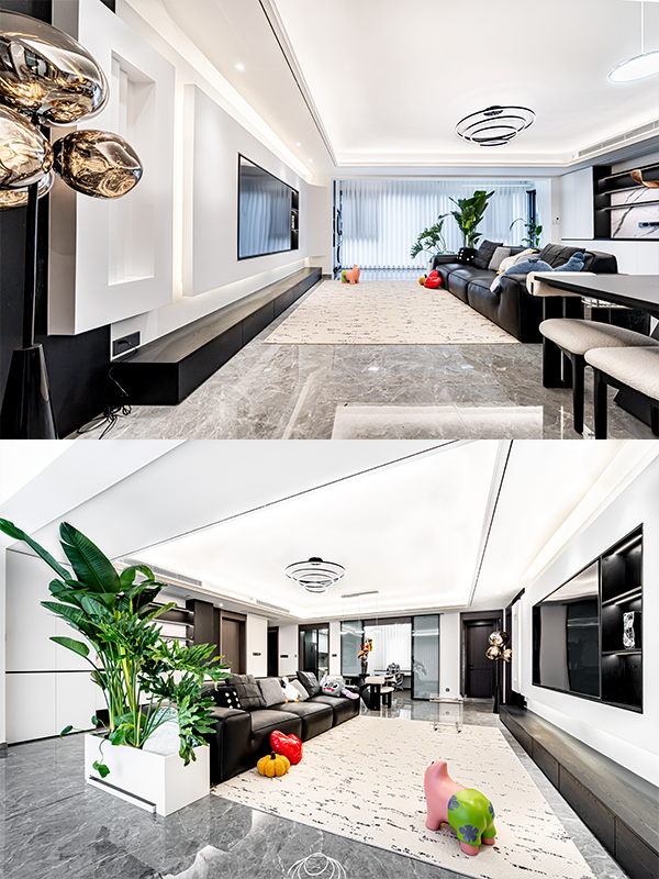 精裝交付,原有的簡(jiǎn)約硬裝搭配極簡(jiǎn)黑白定制和軟裝,干凈利落