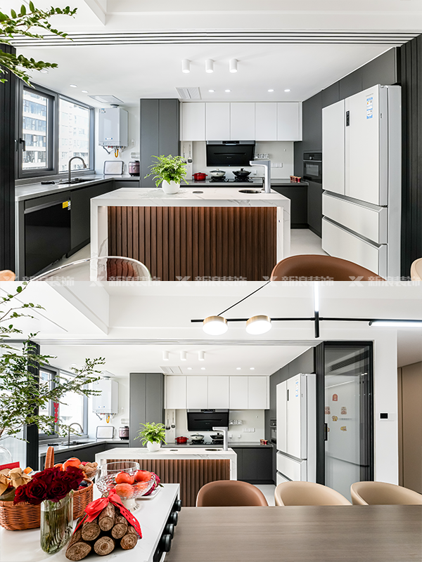 通過吊軌四聯動玻璃門打造靈活多變的廚房空間,動線流暢,家人之間也能更多互動。