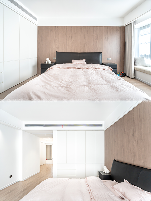 全屋地面采用木地板369通鋪,腳感舒適,視覺上也和木色墻板達成統一。
