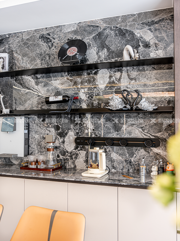 背板小心機:大塊花紋巖板打底,低調奢華,細節感直接拉滿!
