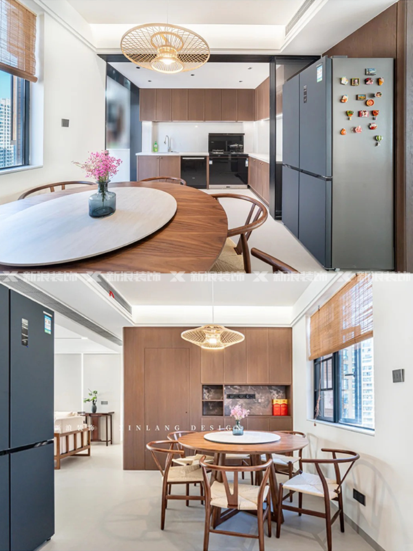 **餐廳**:圓桌象征著團(tuán)圓,搭配中式竹編吊燈和木質(zhì)餐椅,一家人圍坐在一起吃飯,幸福感爆棚!