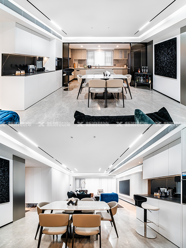 整個空間在定制上選擇了琥珀白+琥珀白的搭配,純粹又大氣
