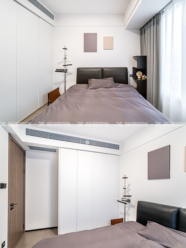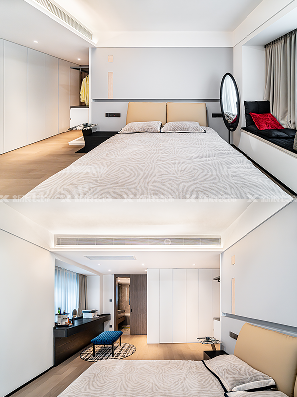 主臥壁掛式衣帽間,預留次凈衣區,同時增加了很大的觀賞性。