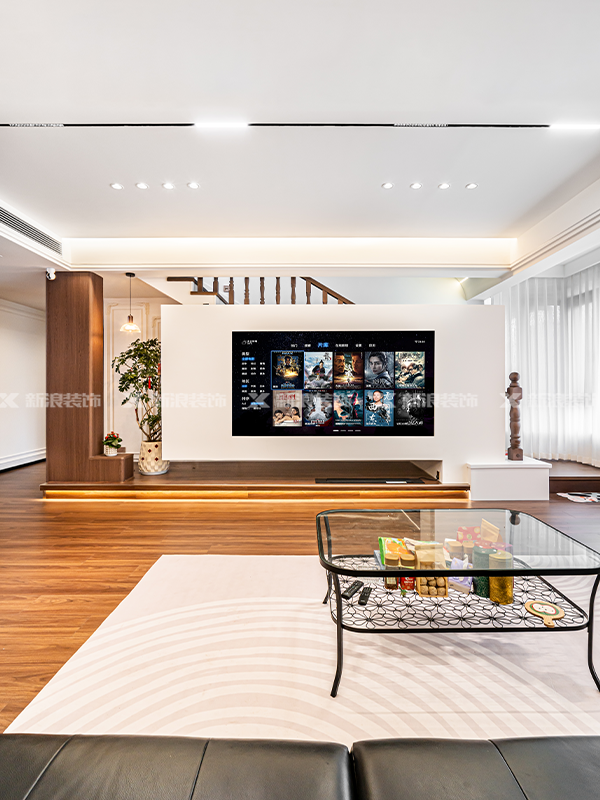 高級而具有呼吸感,抬高地臺,打造出懸浮電視的輕盈感