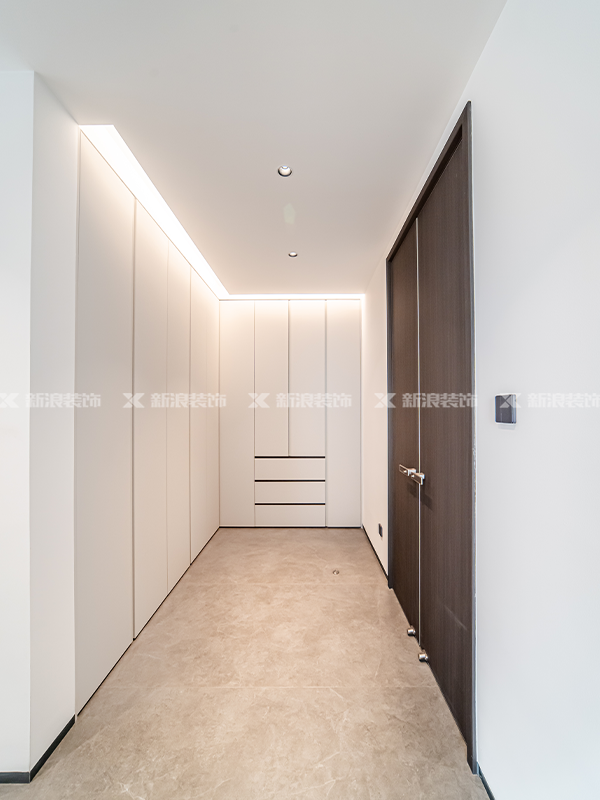 弧形墻角弱化墻體的存在,往里走就是女主人的衣帽間