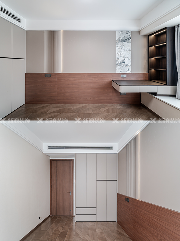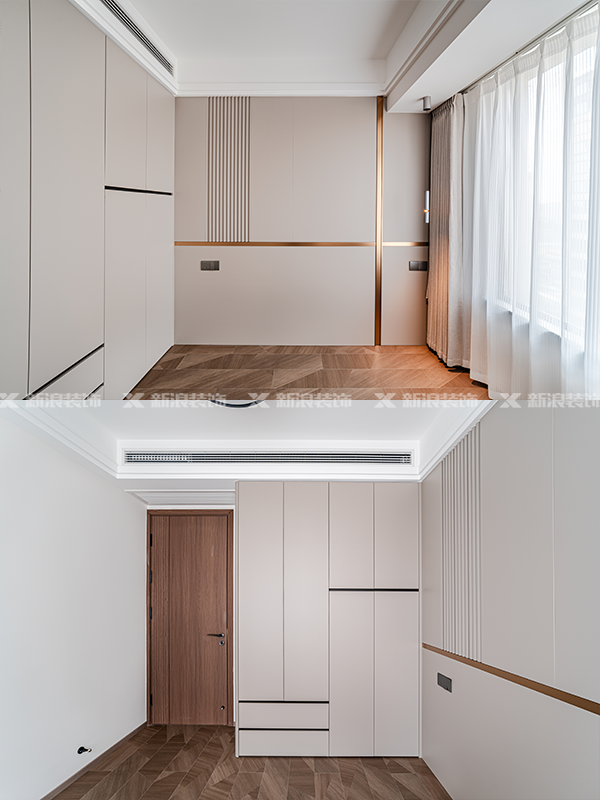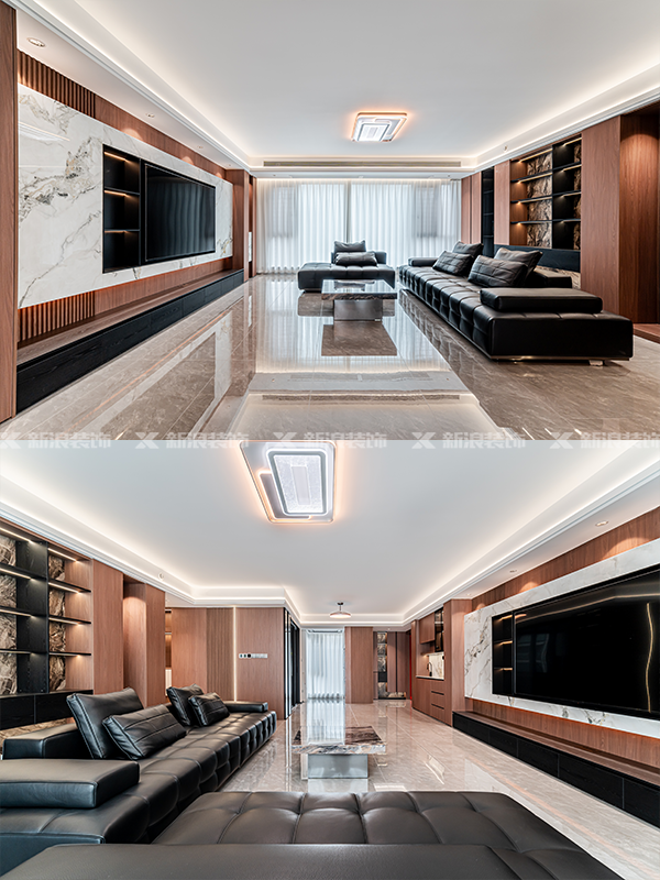 新浪裝飾,極刻美家,毛坯裝修,長沙裝修,柜墻一體化,一比一還原實景落地,意式輕奢,全屋定制,高級感客餐廳一體設計,穿插式設計,裝修風格